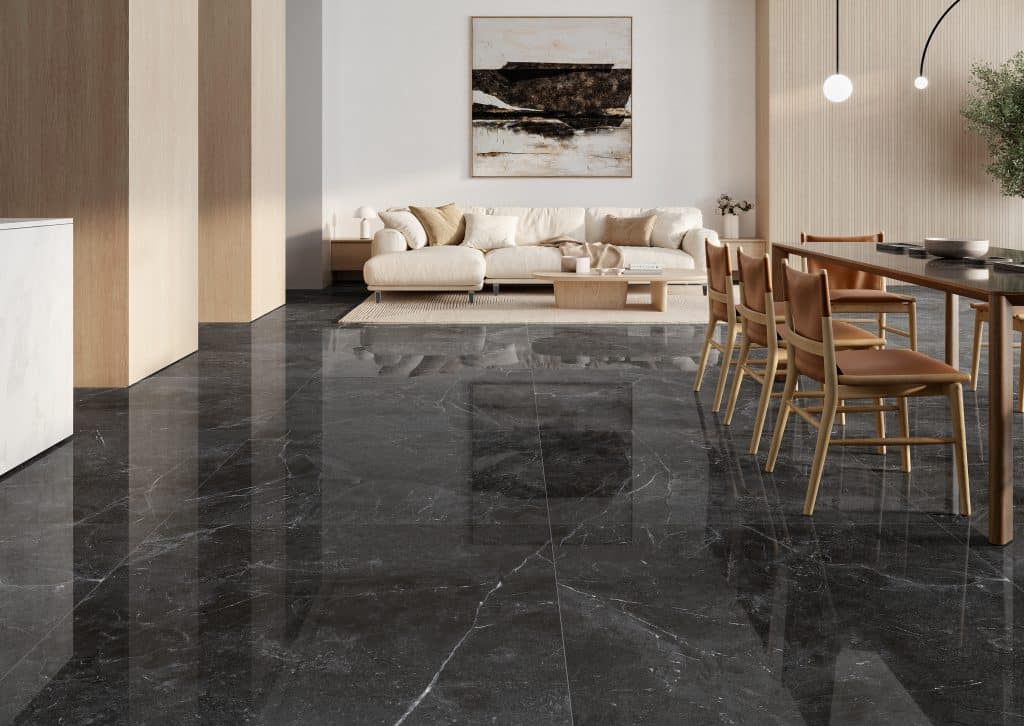 Los acabados efecto piedra o cemento aportan un toque contemporáneo y minimalista, mientras que las piezas con textura madera crean ambientes más cálidos y naturales. Además, el formato gran formato potencia la continuidad visual y elimina juntas, haciendo que el espacio parezca más amplio y luminoso.